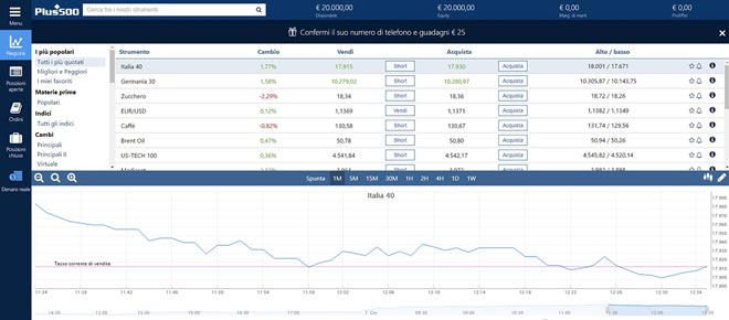 Compilate il form e verrete subito indirizzati al pannello trading di Plus500. Vi verranno date delle indicazioni per verificare il conto inserendo numero di telefono e verifica mail.