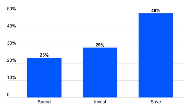 In un recente sondaggio, più di tre intervistati su quattro hanno affermato che avrebbero risparmiato o investito i soldi in questo modo: