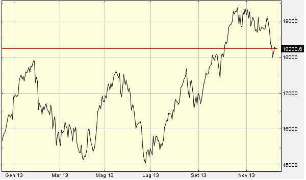 Se prendiamo in esame i mercati azionari, il 2013 hanno registrato un buon recupero. Perdendo come riferimento l’indice della borsa italiana Ftse Mib, a gennaio il suo valore era al disotto di 15.000 punti, oggi le quotazioni sono sopra i 18.000 punti con un picco nel mese di novembre a superiore a 19.000.