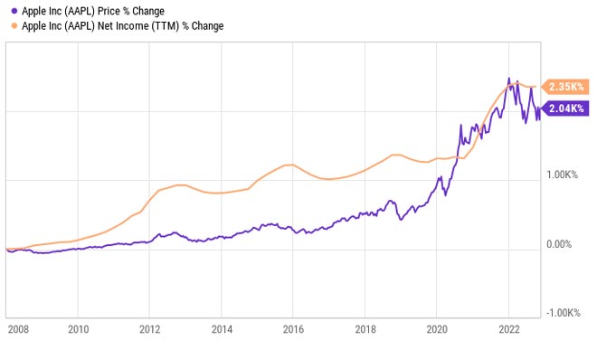 Faccio un esempio. Tra l'inizio del 2008 e il 1 marzo 2009, le azioni Apple (NASDAQ: AAPL) sono scese di oltre il 50%. L'iPhone era uscito ed era un prodotto caldo, la società era redditizia, ma agli investitori non importava, vendevano di tutto. Il panico dominava la mente degli investitori.