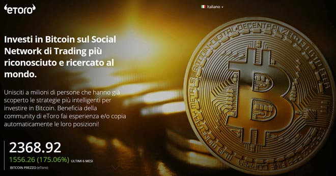 eToro è la community leader nel settore del trading online. La piattaforma consente ai propri iscritti di connettersi a una rete globale e in continua crescita, che conta oggi circa 6 milioni di utenti in oltre 140 Paesi. La missione di eToro è rivoluzionare il modo in cui le persone accedono ai mercati finanziari per fornire un’esperienza di trading social, semplice e trasparente. La piattaforma permette infatti ai membri di comunicare tra loro, copiarsi e seguire i vari profili per sfruttare la conoscenza della community (vedi la recensione di eToro).