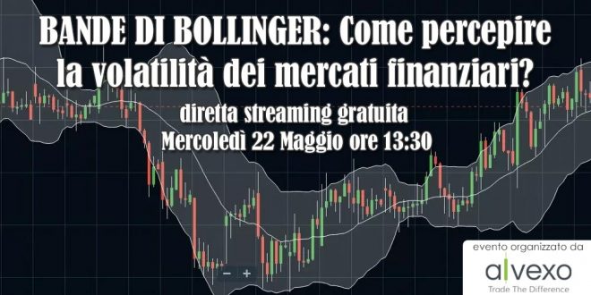 Per il giorno 22 maggio il Broker Forex CFD Alvexo organizza un webinar sul trading gratuito intitolato “Bande di Bollinger: Come percepire la volatilità dei mercati finanziari?“.