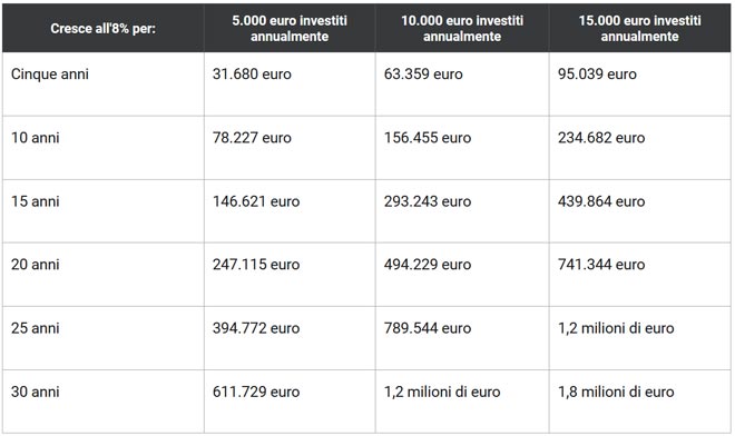 Tanto per cominciare, molti di noi iniziano a investire molto più tardi del dovuto. È deplorevole perché i nostri primi euro investiti hanno il lasso di tempo più lungo in cui crescere.