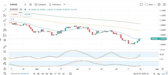 Prosegue il recupero della moneta unica, caratterizzato da una impulsività dettata da voci che girano sul mercato rispetto ad un possibile duplice intervento della Bce giovedì prossimo, ovvero un rialzo di 25 o 50 punti base e contemporaneamente, nuovi acquisti di bonds e interventi a sostegno dei paesi periferici, tra cui lo scudo antispread. Sono solo voci, ma tanto è bastato per riportare la moneta unica non lontano da quel famoso livello di breakout a 1.0320 30 che aveva rappresentato l’ultimo baluardo prima della discesa alla parità. I massimi visti sono stati in area 1.0270, per ora, anche se da qui a giovedì ci potremmo anche aspettare i test dell’area richiamata sopra 1.0300.