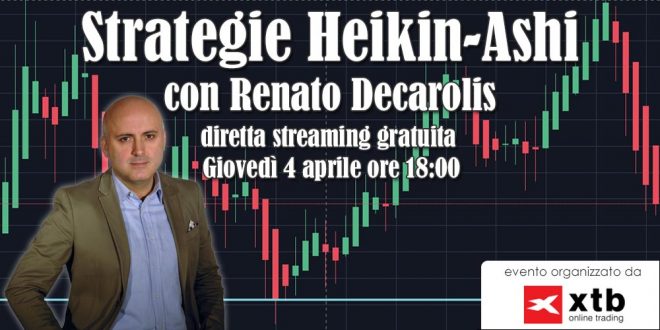 Dopo il grande successo della Masterclass, il trader professionista di fama internazionale Renato Decarolis torna a condividere le sue esclusive strategie con le candele Heikin-Ashi per aiutarti a migliorare le tue analisi tecniche in questo webinar gratuito firmato XTB (vedi qui la nostra recensione e commenti di XTB).