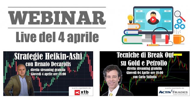 Entrambi i webinar sul trading gratuiti ed avranno inizio alle ore 18:00, sarà quindi impossibile seguirli entrambi, ma visti i diversi temi affrontati, i trader potranno fare la loro scelta.