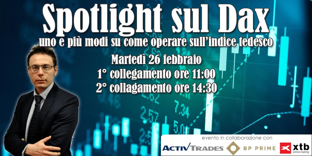 Sai che oltre l’80% dei traders lavora sul Dax? Se vuoi apprendere le tecniche e i modi per iniziare ad operare sull’asset più amato dai traders di tutto il mondo, non puoi perderti questo esclusivo Webinar sul Trading.