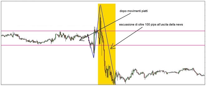 Chi fa trading sul forex sa bene che ci sono dei momenti di impennata improvvisa della volatilità, con oscillazioni anche fino a 100 pips in pochi minuti. Questo avviene in occasione dell’uscita delle news. Si tratta prevalentemente di notizie di carattere macroeconomico, alcune delle quali di particolare importanza, tali da imprimere un'accelerazione di volatilità ai cambi in qualche modo interessati, in maniera anche molto intensa mediamente nei primi io minuti dall’uscita. In questi momenti, a parte chi opera con strategie di trading apposite per le news. è consigliabile non effettuare operazioni a causa dell'elevata volatilità ed imprevidibilità dei prezzi.