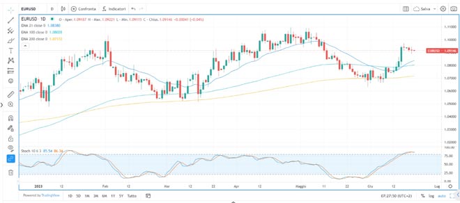 In campo valutario, abbiamo visto un recupero parziale del dollaro contro le principali valute, non abbastanza tuttavia per parlare di una correzione significativa. Le coppie EurUsd e GbpUsd hanno entrambe perso circa 50 pips, per poi risalire al di sopra di 1.0900 e 1.2750 rispettivamente. La tendenza di fondo rimane bullish, sebbene una condizione di ipercomprato potrebbe portare a una correzione più rilevante, specialmente se ci fossero dichiarazioni hawkish sui tassi di interesse.
