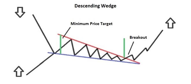 Il wedge, o “cuneo”, è un triangolo irregolare, i cui due lati (le trendlines) convergono con pendenze differenti, assumendo perciò la forma di un cuneo. Come la formazione a triangolo è caratterizzato da una diminuzione dei volumi che segnala una sosta del trend.
