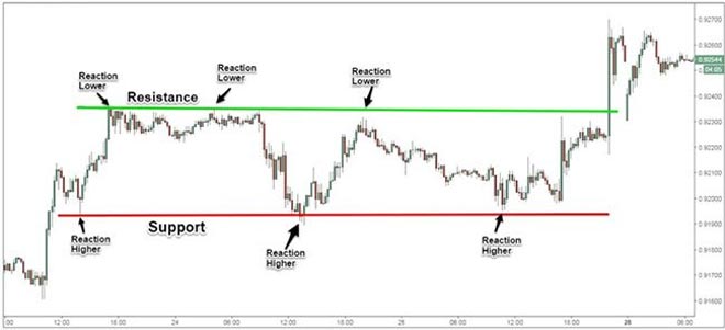 La figura più comune nell'analisi tecnica sono i livelli di supporto e resistenza.