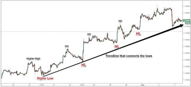 Grazie all'analisi tecnica è possibile identificare una tendenza o direzione del mercato dal prezzo. Di solito, una serie di punti di oscillazione più alti e più alti è considerata una tendenza al rialzo mentre una serie di minimi più bassi e massimi più bassi è considerata una tendenza al ribasso.