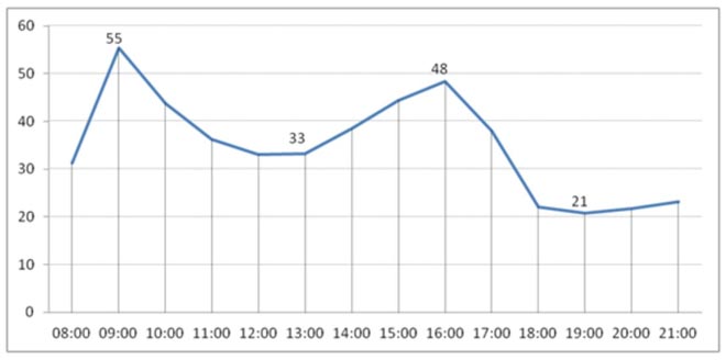 In questa analisi ci siamo concentrati sulle barre H1. La più grande volatilità avrebbe potuto essere notato due volte al giorno. Come mostra la tabella qui sotto, le mosse più grandi si sono verificate tra le 8:00 e le 9:00 GMT. Ciò significa che gli operatori potrebbero aspettarsi che la volatilità sul Dax aumenti quando inizia la negoziazione nella Borsa tedesca. Il secondo periodo di maggiore volatilità si è verificato durante l'ultima ora di negoziazione in borsa, con un range medio di spostamento di 48 punti.