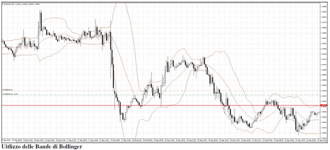 L'ampiezza della bande che vengono così ad emergere dal grafico è direttamente correlata alla volatilità del prezzo in esame, mentre i principali segnali operativi che possono essere presi in considerazione sono dati dal grafico dei prezzi che giunge in prossimità della curva inferiore (segnale di acquisto se la curva inferiore regge e i prezzi rimbalzano verso l'alto) o dal grafico dei prezzi che raggiunge la curva superiore (segnale di vendita se questa curva superiore regge e i prezzi rimbalzano verso il basso).