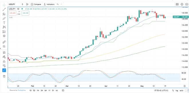 Anche l’EurUsd è tornato sotto 1.0500, anche se pare consolidare meglio della valuta britannica nonostante dati sull’inflazione che nell’Eurozona, sono usciti in linea con le attese al 7.4% su base annua. Tra i vari movimenti dobbiamo segnalare, il ribasso di UsdJpy che ieri in serata ha toccato quota 128.00 perdendo oltre 130 pips rispetto ai livelli di inizio sessione europea, anche se poi nella notte, durante la seduta asiatica, ha recuperato metà della discesa. Chiusure di posizioni sui cross AudJpy, Eurjpy e GbpJpy le principali ragioni del movimento di ieri avvenuto proprio in concomitanza con dati giapponesi negativi sul Pil anche se migliori delle aspettative.