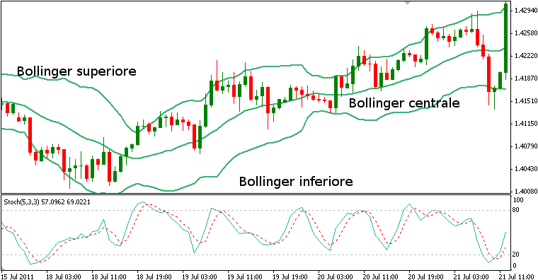 Le Bande di Bollinger sono forse gli elementi più utilizzati dai trader esperti che cercano rendimenti importanti senza correre troppi rischi. Essi si prestano per molteplici strategie, la più famosa delle quali prevede l’utilizzazione in tandem di un altro importante indicatore di mercato, l’oscillatore RSI, simile alle Bande di Bollinger ma la cui media mobile oscilla tra due valori anziché tre, uno assestato sulla quota 80 e l’altro sul 20.