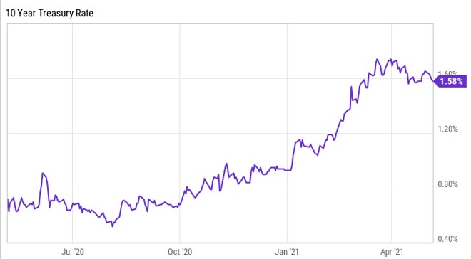 I rendimenti dei titoli del Tesoro degli Stati Uniti hanno toccato i minimi storici lo scorso anno durante le fasi iniziali della crisi COVID-19. Ma da allora sono aumentati costantemente, poiché le aspettative di inflazione in un'economia in accelerazione hanno innescato una svendita di obbligazioni.