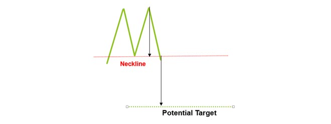 La neckline si crea quando il prezzo forma un livello di supporto, e il pattern è completo quando il prezzo si rompe al livello di supporto, o alla neckline.