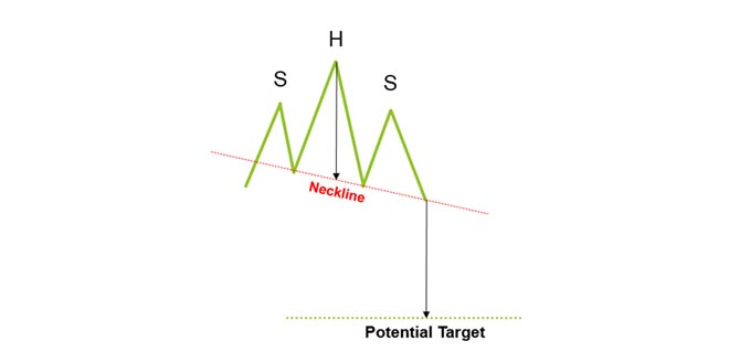 Questo tipo di pattern può crearsi all'interno di un trend rialzista, in cui il prezzo aumenta e poi ricade fino a un certo punto, formando un picco conosciuto come spalla sinistra. Il prezzo può poi risalire e creare un picco più alto del primo, per poi riscendere fino al livello di supporto del primo massimo. Il nuovo picco è chiamato testa, e il livello di supporto che si forma è conosciuto come neckline. Se il pattern si forma completamente, il prezzo balzerà al di fuori del livello di supporto e creerà un picco inferiore, conosciuto come spalla destra.