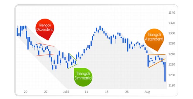 Nello studio del grafico è una ottima tecnica l'identificare dei Pattern di prezzo “triangoli” per conoscere l'andamento futuro dei prezzi.