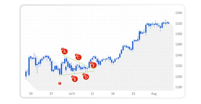 - I punti ABCDE si formeranno dal contatto tra massimi e minimi e il supporto e la resistenza