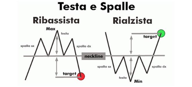 Ci sono tre modelli di inversione tra i più importanti nel Forex. Uno di questi è noto come “testa e spalle”, perché quando si ha un tracciato che porta qualche somiglianza con la testa e le spalle del corpo umano, allora ci troviamo di fronte a questa situazione.