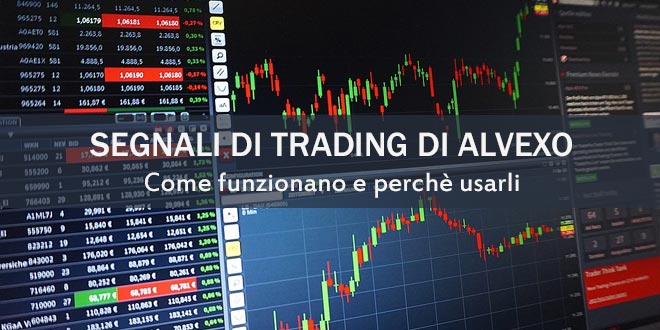 Per segnali di trading si intendono quelle informazioni utili ai trader per capire il momento più adatto per entrare a mercato e fare profitto. Uno dei servizi offerti dal Broker Alvexo è proprio questo, un sistema di segnali automatici che vengono forniti ai clienti in maniera completamente gratuita.