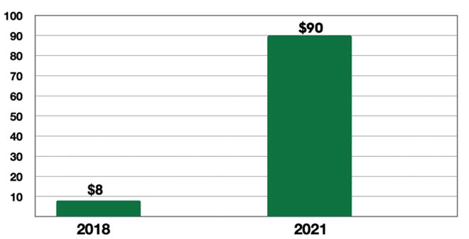 Anche i ricavi dell'azienda sono aumentati del 136% nel 2020 a 1,1 miliardi di dollari e gli utili sono aumentati da una perdita di 30 milioni di dollari nel 2019 a un utile netto di 322 milioni di dollari nel 2020.
