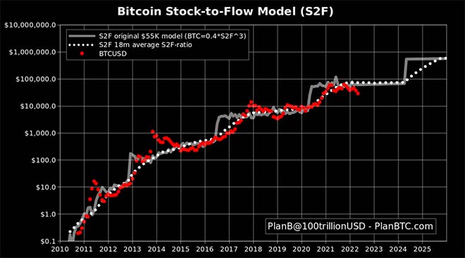 “Il modello S2F originale del 2019 da 55.000 dollari sembra adattarsi meglio del successivo aggiornamento da 100.000 dollari. È interessante notare che un refitting basato su un rapporto S2F medio di 18 m e nuovi dati di 3 anni confermano il modello originale. La cattiva notizia: il modello punta ancora a 500.000 dollari dopo il dimezzamento del 2024. “