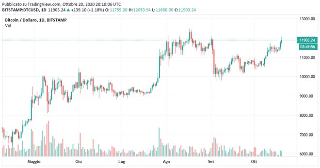 Il Bitcoin è attualmente scambiato a 19.903 dollari dopo aver infranto il livello psicologico critico di 12.000 dollari per la prima volta dal 1 settembre.