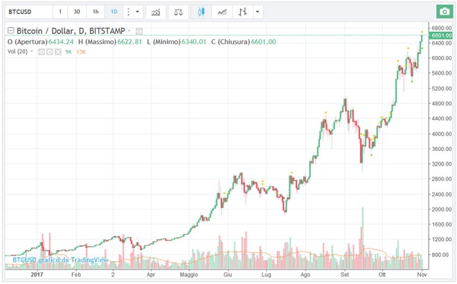 Ennesimo record storico del Bitcoin messo a segno nelle ultime settimane. La criptovaluta più importante al mondo sembra non voler arrestare la propria corsa. Negli ultimi minuti la quotazione del Bitcoin ha superato i 6.600 dollari per la prima volta nei nove anni dopo la sua nascita.