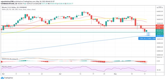 Tra il 9 e il 17 maggio, il prezzo del Bitcoin è sceso da 58.600 a 43.500 dollari, perdendo quasi 15.000 dollari nella sua valutazione complessiva. Da quando ha raggiunto il massimo a metà aprile, il BTC ha registrato un trend ribassista costante, ma può essere il momento della rinascita? Diamo un'occhiata più da vicino con l'analisi tecnica su grafico del Bitcoin