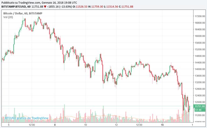 Questo il grafico del Bitcoin degli ultimi giorni.