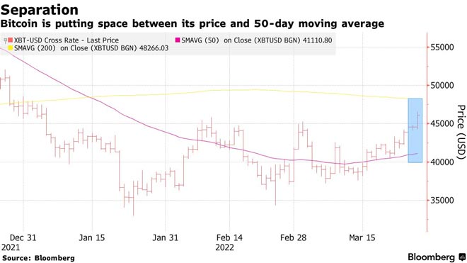 Bitcoin al di sopra della sua media mobile a 50 giorni
