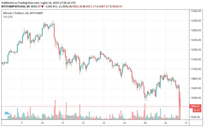 Bitcoin sta cadendo come un peso morto dopo la rottura del supporto posizionato a $ 10.000. La prima criptovaluta ha subito una crescente pressione ribassista dopo aver sfiorato quota 11.000 dollari nella mattinata di oggi. Hai prezzi attuale il BTC/USD si è riportato sui minimi di luglio.