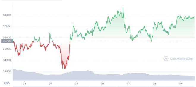 Al momento il prezzo del Bitcoin è scambiato a 37.000 dollari, e sebbene alcune previsioni indicano che la prima criptovaluta possa precipitare sotto i 20.000 dollari, le prospettive a lungo termine rimangono rialziste.