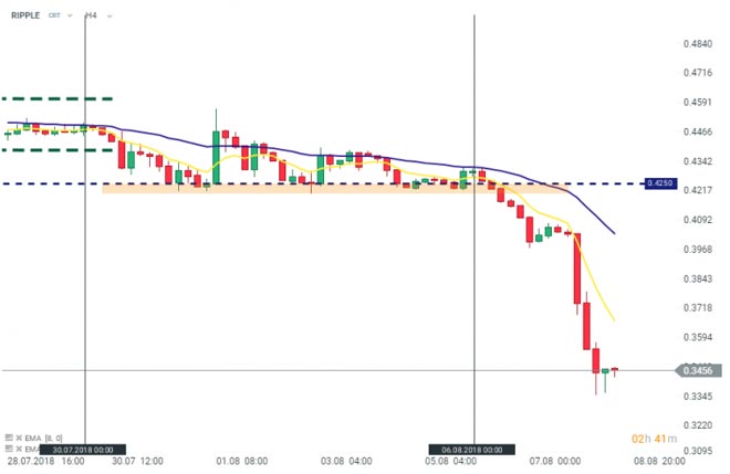 Ripple è scambiato su nuovi minimi di inizio anno intorno a 0,345 dollari. La moneta digitale è scesa fino alla zona di supporto localizzata intorno ai 0,425 dollari lo scorso lunedì. Un livello tecnico in cui gli speculatori hanno spinto il prezzo ancora più basso.
