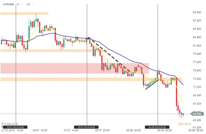 Litecoin, proprio come Ripple, è scambiato al minimo dell'anno. L'ultimo calo sembra essere alleggerito attorno all'handle da 65 dollari.