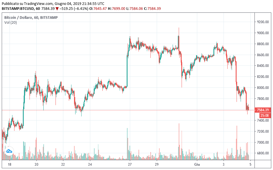 Nel momento in cui scriviamo, il prezzo del Bitcoin si trova a ridosso dei 7.500 dollari.