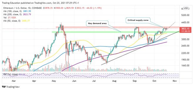 Ethereum continua a straziare nella zona di approvvigionamento verso 4.000 dollari