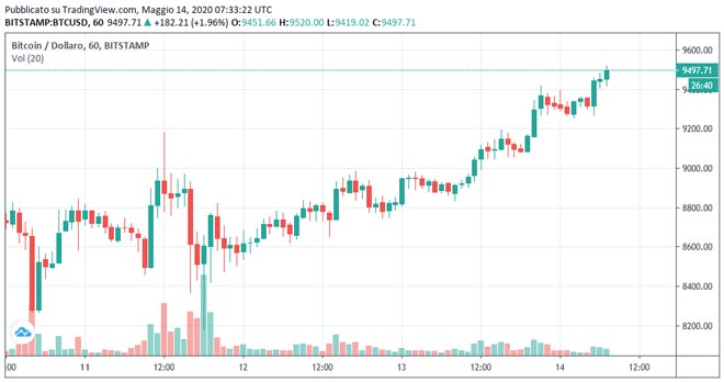 Il prezzo dei Bitcoin BTC/USD è salito sopra quota $ 9.000 per la seconda volta dal crollo a $ 8.100 del fine settimana. La prima volta che Bitcoin ha superato questa resistenza, non è riuscito a vincere la pressione di vendita a $ 9.200 tornando a scendere nuovamente. Questa volta invece la tendenza rialzista si è mostrata più forte superando forti barrire e raggiungendo quota $ 9.500.