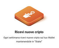 Con il servizio staking, i partecipanti impegnano le loro monete nel protocollo di criptovaluta e partecipano così alla produzione e convalida di nuovi blocchi della blockchain e di garantire la sua efficienza e sicurezza.