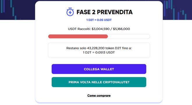 Per partecipare alla prevendita dei token D2T visita il sito ufficiale https://www.doveinvestire.com/dash2trade/vaiit