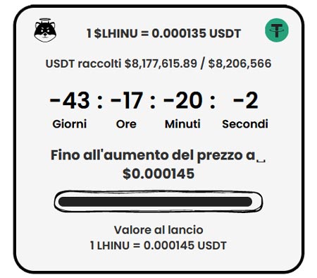 Il prezzo attuale di $LHINU è ancora molto basso, bastano soli 0,000135 USDT per token, il che lo rende un’opzione attraente per gli investitori che cercano un buon affare.