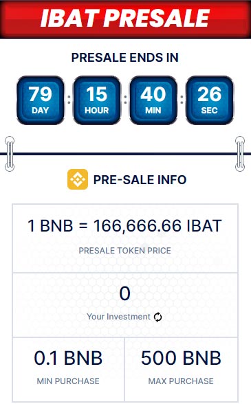 Questo è il momento migliore per acquistare il token di Battle Infinity. È infatti in prevendita dall'11 luglio 2022. La prevendita termina il 10 ottobre 2022 e IBAT è già a prezzo scontato. IBAT ha superato il suo soft cap, il che significa che inizierà lo sviluppo del gioco e il beta testing.