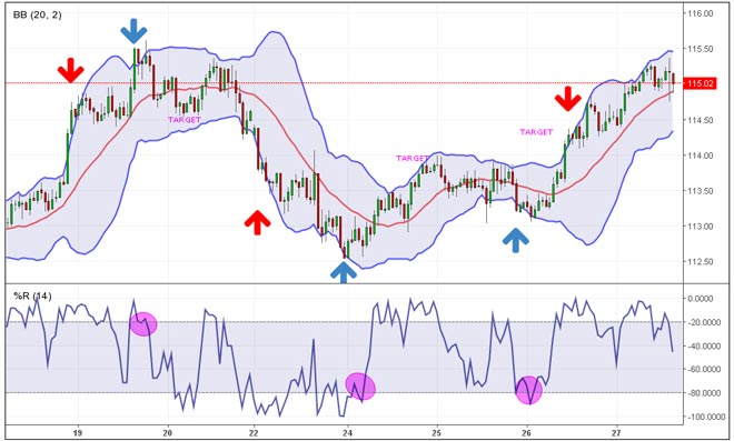 Quando il prezzo supera le bande di Bollinger, è un'indicazione che c'è un cambiamento nella volatilità e si prevede che il prezzo continuerà a muoversi in quella direzione.