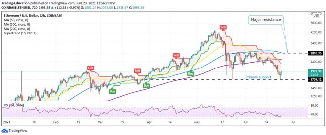Ethereum combatte un'immensa pressione di vendita a 2.000 dollari