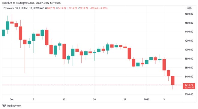 Pessime anche le prestazioni delle altcoin, dopo un recente movimento rialzista che si è rivelato essere una bull trap. Ether (ETH), la più grande altcoin per capitalizzazione di mercato, è in negativo del 6.3% rispetto a ieri a circa 3.200$. Nell'ultima settimana il suo prezzo è diminuito di quasi 700$.