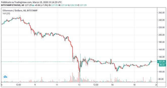 Ethereum (ETH/USD) si è scotrato con il livello di resistenza di 130 dollari per poi ritirasi 128 dollari al momento della stampa. La seconda moneta virtuale sta guadagnando oltre il 7,5% questo mercoledì, spostandosi in sincronia con Bitcoin poiché la sua correlazione con il primo asset digitale si è avvicinata a 1,00.