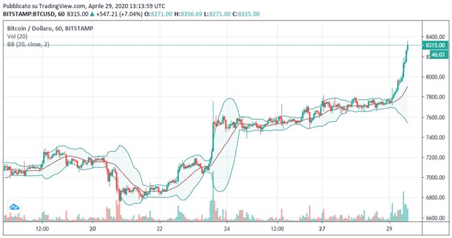 Il prezzo del Bitcoin BTC/USD torna sopra quota 8.300 dollari in scia allo slancio rialzista dell'intero comparto delle criptovalute. Al momento della scrittura il cambio BTC/USD segna un rialzo del 7,24% a 8.306 dollari.